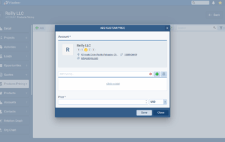 Enabling Customer Price adds a new tab to the Account record — Products Pricing. Users will only be able to update account-based product prices if they have “Write” access to the Account record