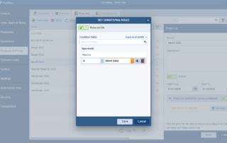 - There is a new setting: “Price List Availability (using conditions)“. This allows the definition of filters based on Account, Opportunity, and Quote fields to determine when the Price List is available for users to select. These filter rules are applied based on the record type (Opportunity/Quote) and its linked Primary Account.