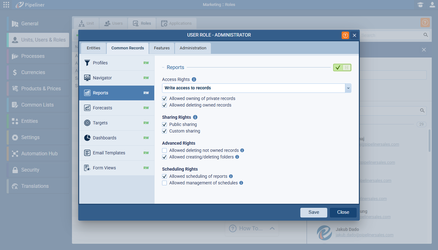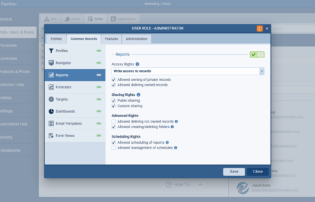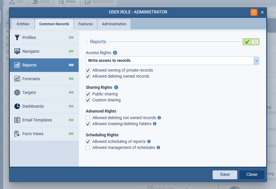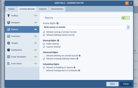 A new right “Allowed owning of private records” has been added for Reports, behaving identically to other main entities.