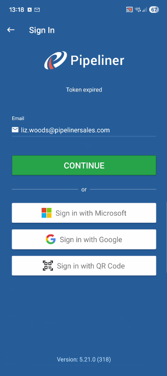 A new button has been added to the sign in screen, which navigates the user to the new “Sign In with QR Code” screen.