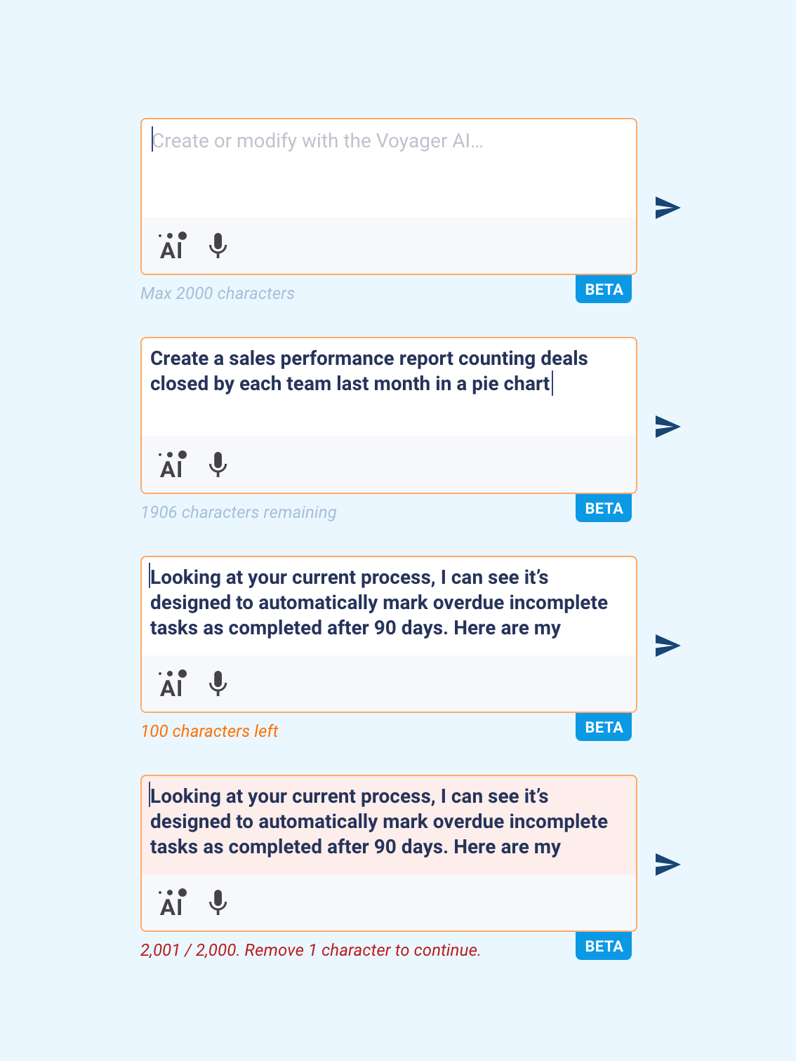 - Text: “[CurrentNumberOfCharacters] / [MaxNumberOfCharacters]. Remove [NumberOverLimitCharacters] characters to continue” (e.g., “2,001 / 2,000. Remove 1 character to continue.”).