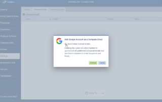 Administrators will be able to upgrade existing company email accounts to track bounced emails and will be automatically prompted when adding a Google accountAccount Account refers to a record of primary and background information about an individual or corporate customer, including contact data, preferred services, and transactions with your company.. Individual users who currently have a Gmail account integrated in their individual Settings will also need to upgrade that account. Microsoft Office 365 email accounts do not require upgrading. ⤵