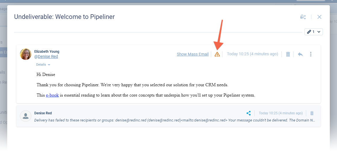 If a user opens an email, the indicator will display if there is at least one bounced sent email within the thread. ⤵