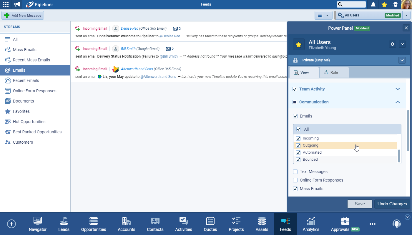 We’ve updated the design of the Feeds filter option to include section headers and have also enabled additional filter options for Emails to include: