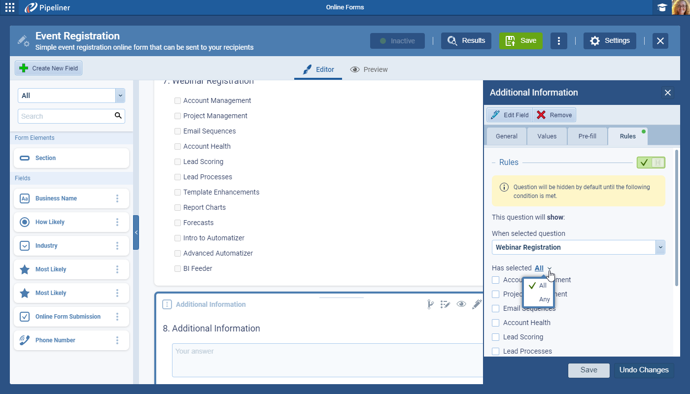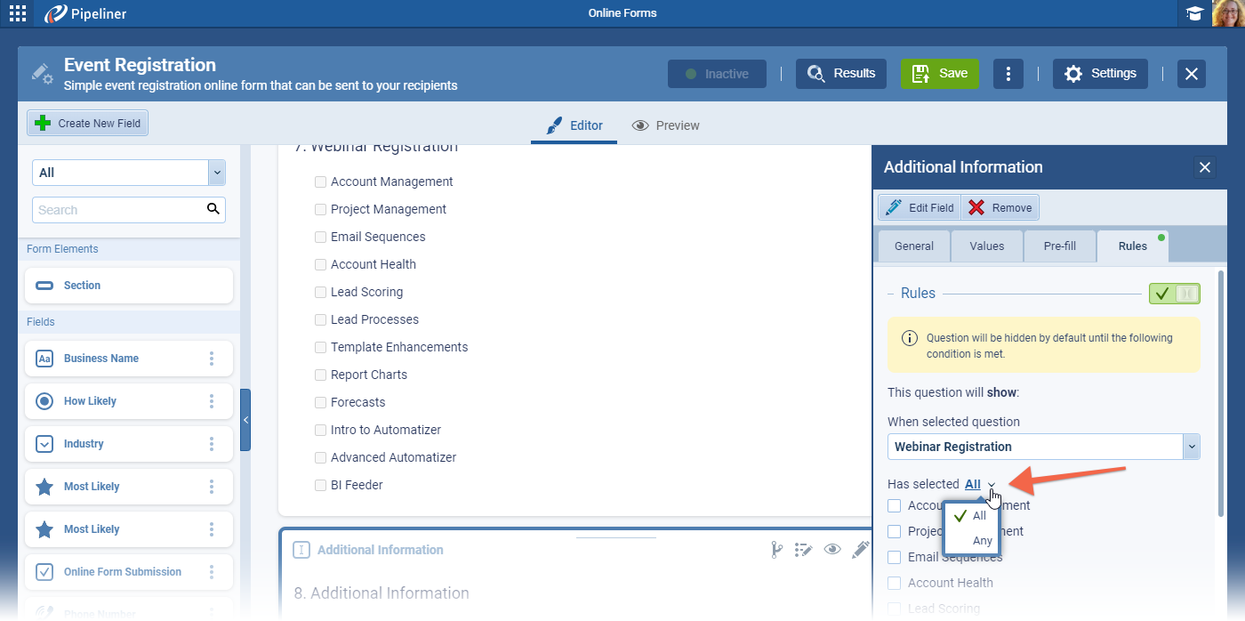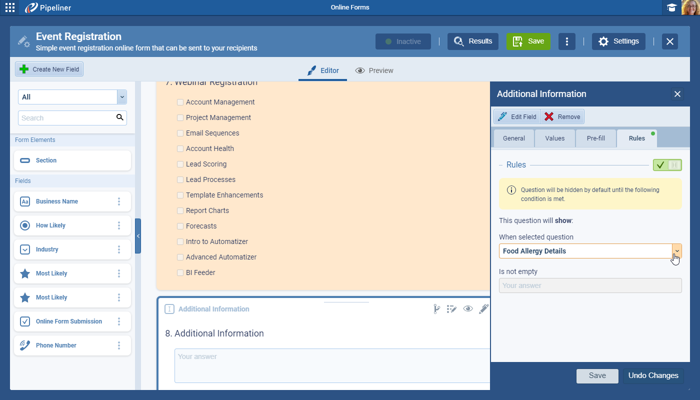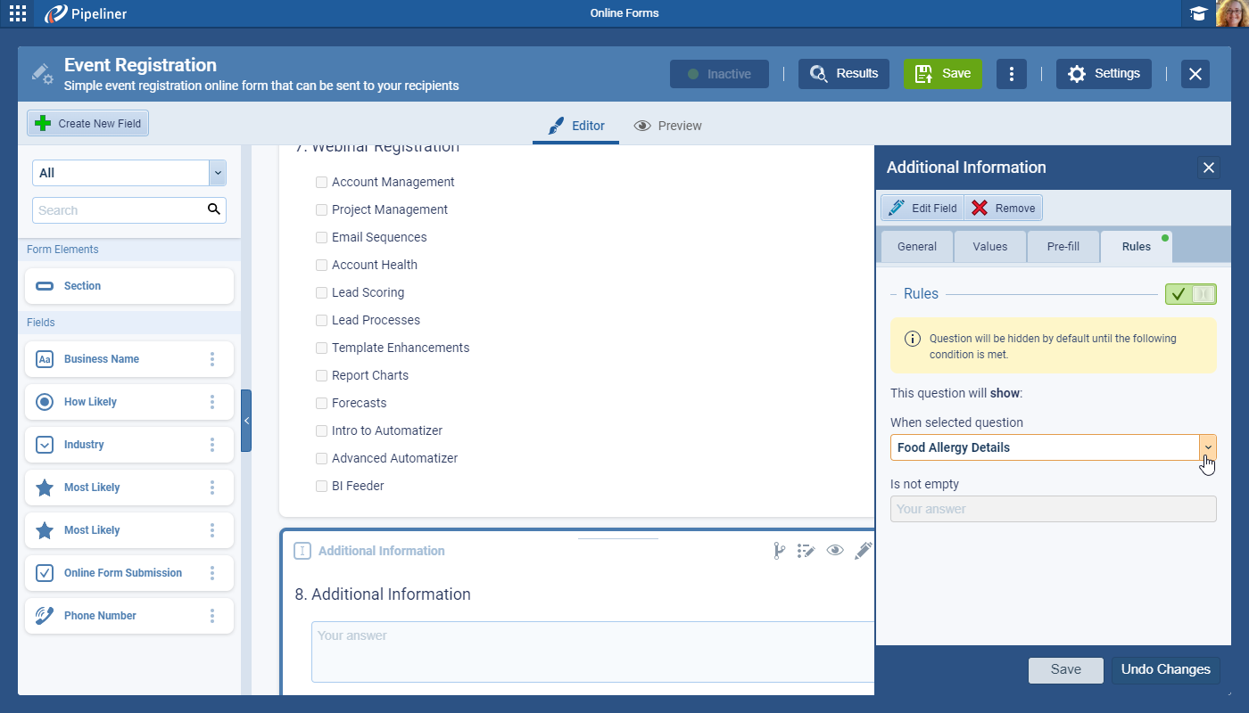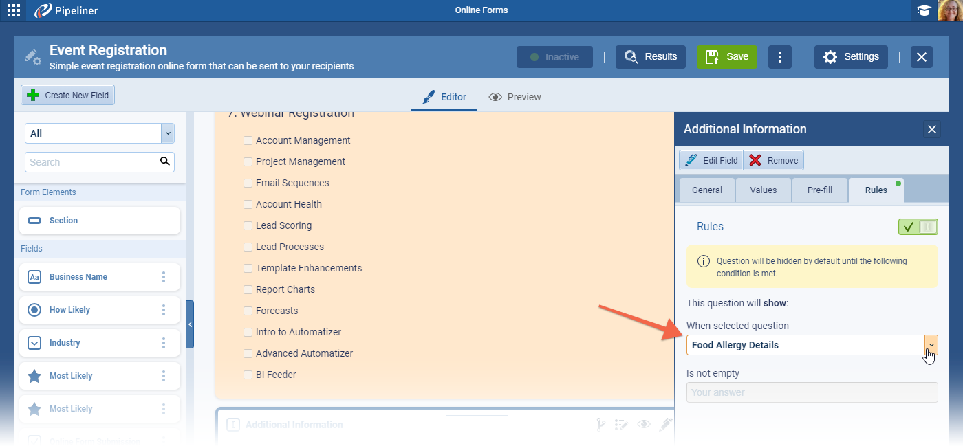 Online Forms › Conditional Fields
