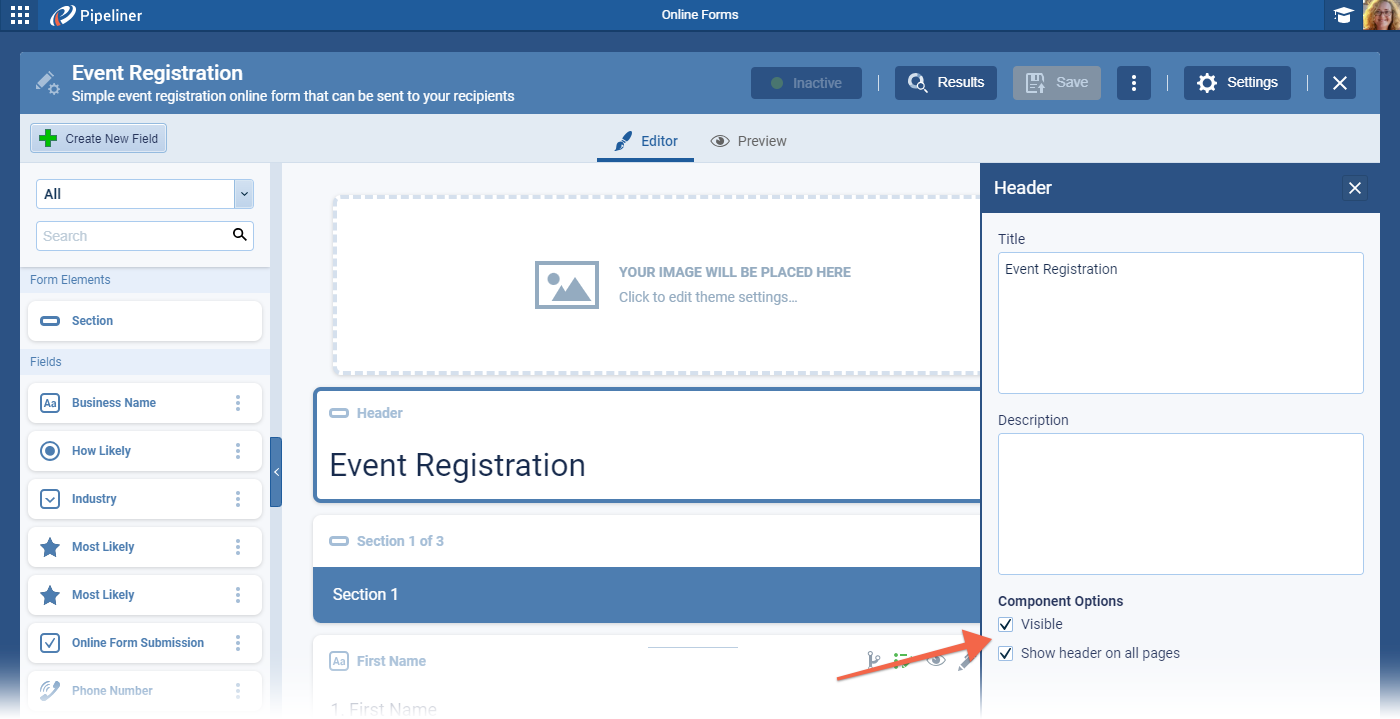 - When selected, the “Form Header” will be visible on all pages on multi-page form.