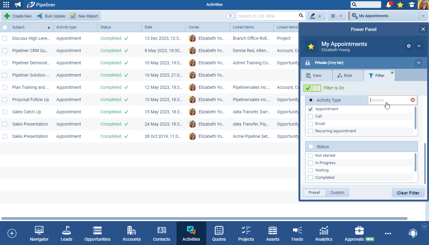Activity Filter