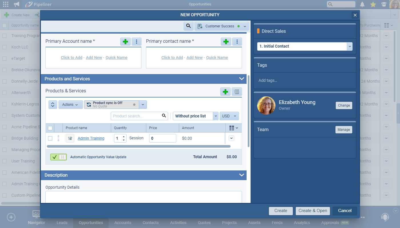 When enabled, the option to populate the Opportunity Value with the total amount for all products is automatically turned on for all relevant Opportunities. ⤵