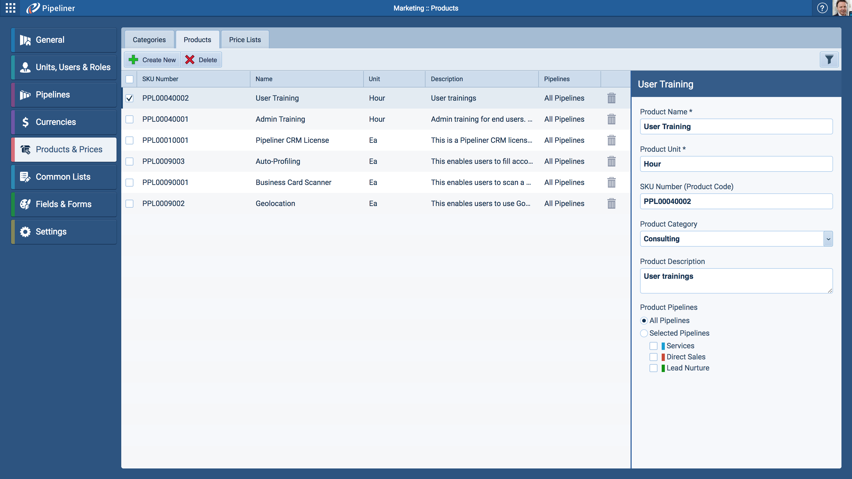 - In Administration › Products and Prices we added a component for products to have ProductProduct Product refers to anything (an idea, item, service, process or information) that meets a need or a desire and is offered to a market, usually but not always at a price. per PipelinePipeline Sales pipelineis a visual representation of the stage prospects are in the sales process.. Click on the product and select Pipelines in sidebar menu.