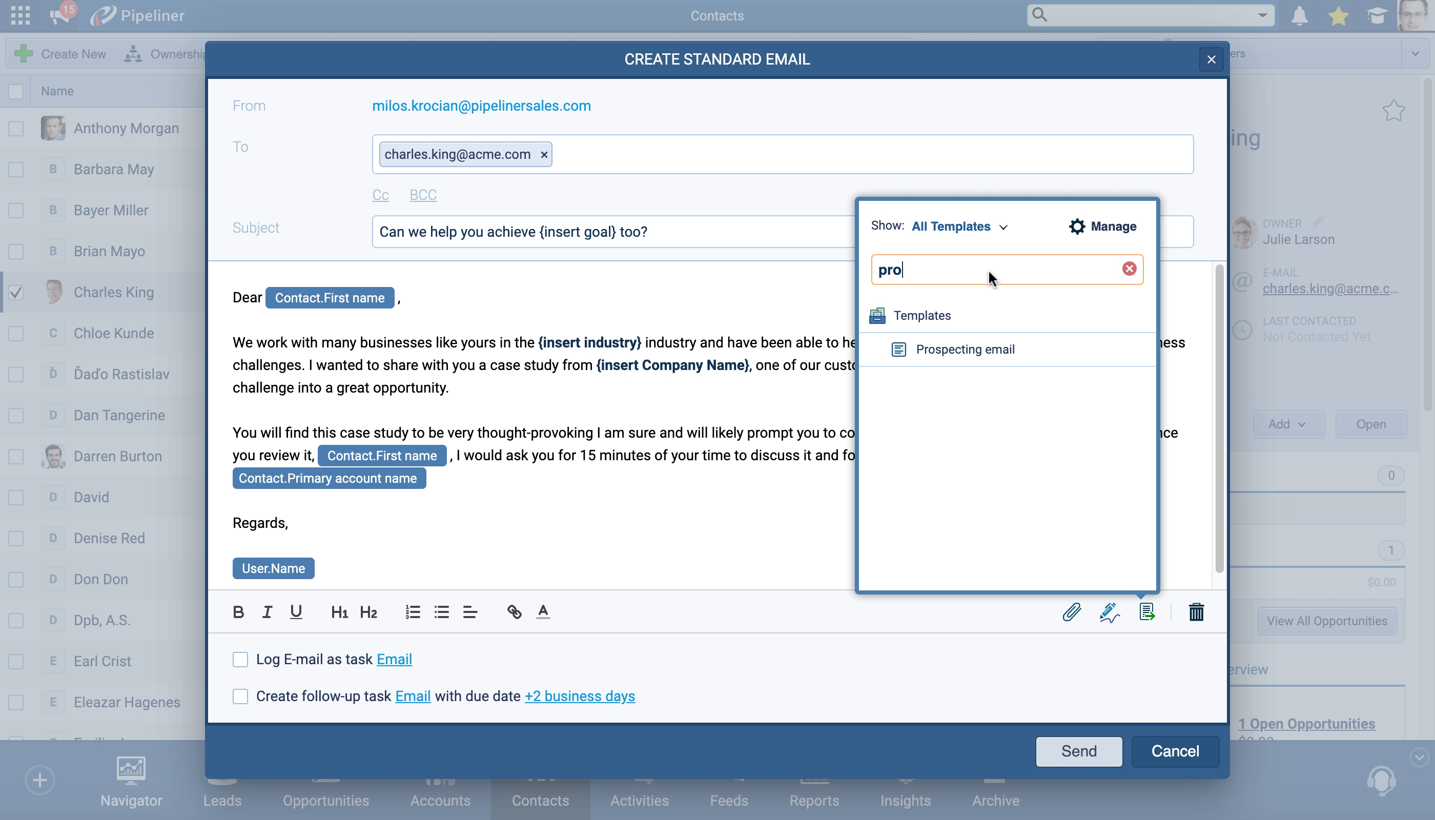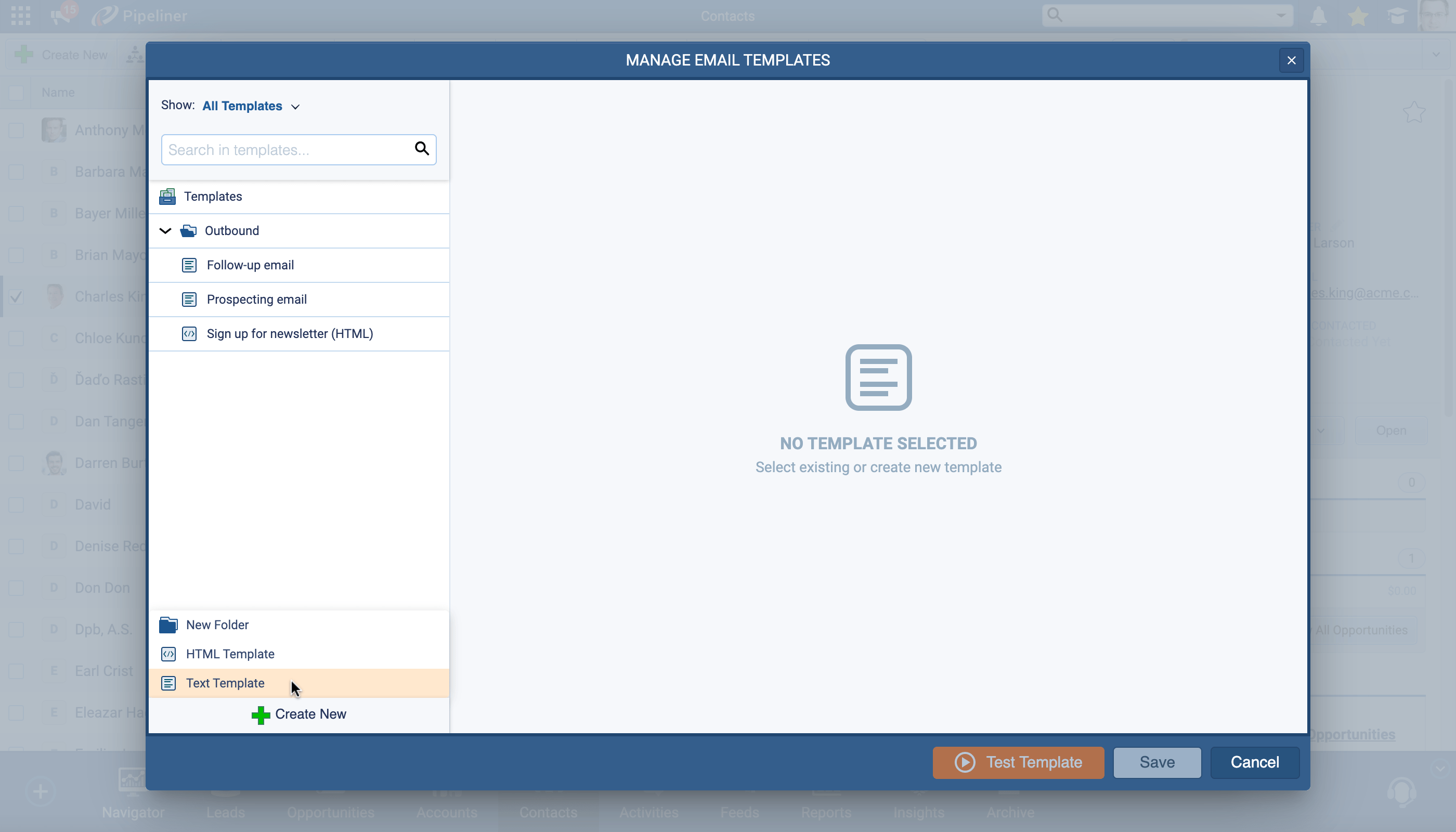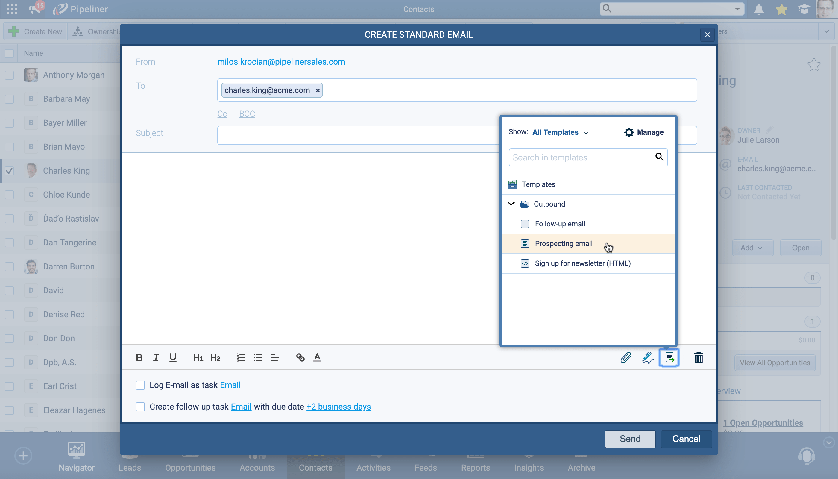 - You can create and share personalized and HTML email templates. These templates can be selected when using the Send Email option for Office 365 and Gmail to send emails to your Contacts.