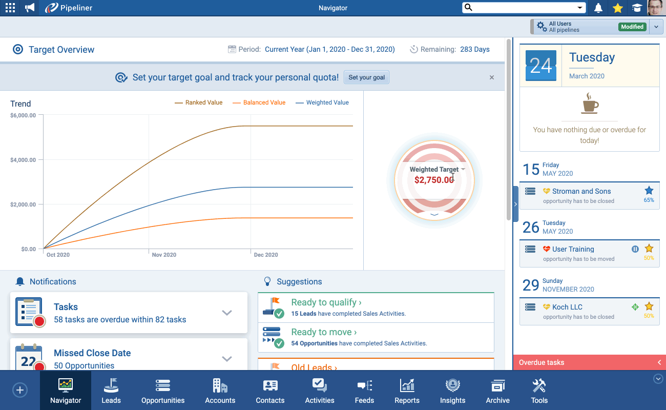 - In the Navigator, you can now set Target Period, Target Value and Comparison Period directly from the Navigator screen in the same way that you can from the Opportunities menu — you no longer have to open up the Target tab to access these settings.