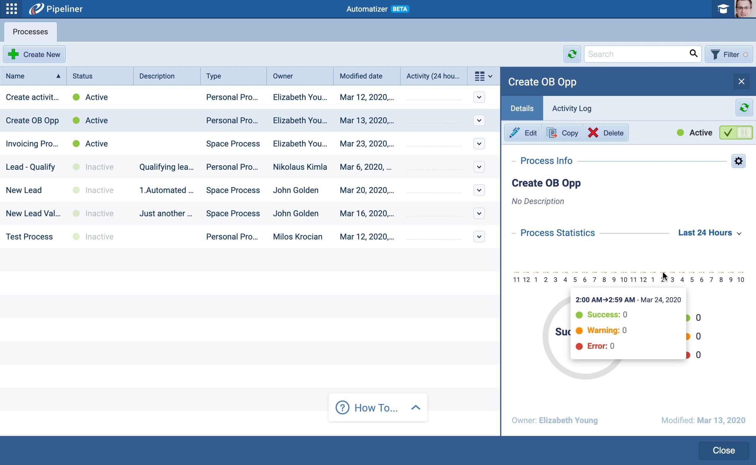 - Every process consists of triggersTriggers Triggers are a set of signals or occurrences that meet certain criteria to be considered an opportunity to make a sale., if/then conditions and can include multiple actions.