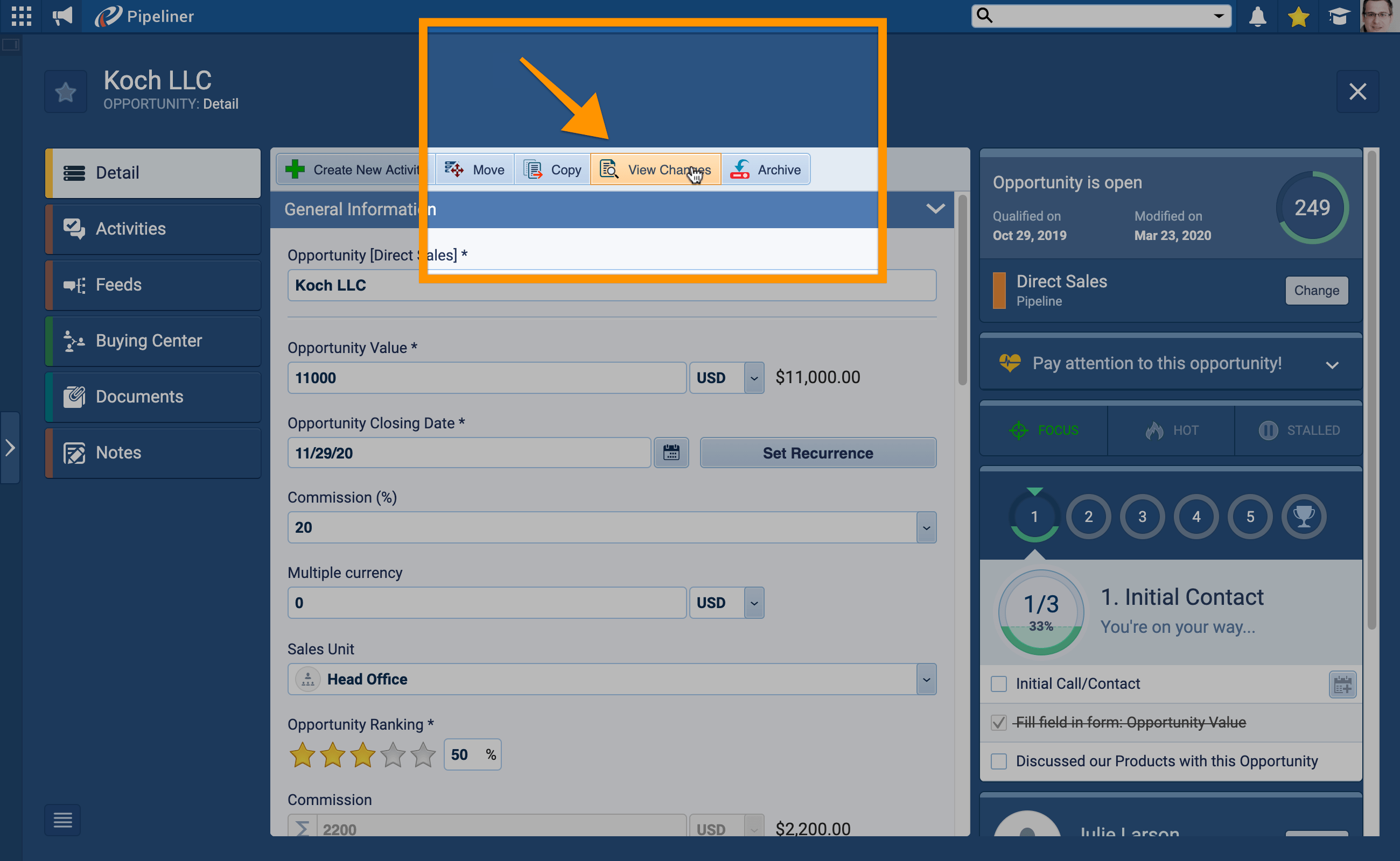 - When a userUser User means a person who uses or consumes a product or a service, usually a digital device or an online service. opens a record inside the Coevera web app, they’ll now see a “View Changes” button on the menu in the Detail screen.