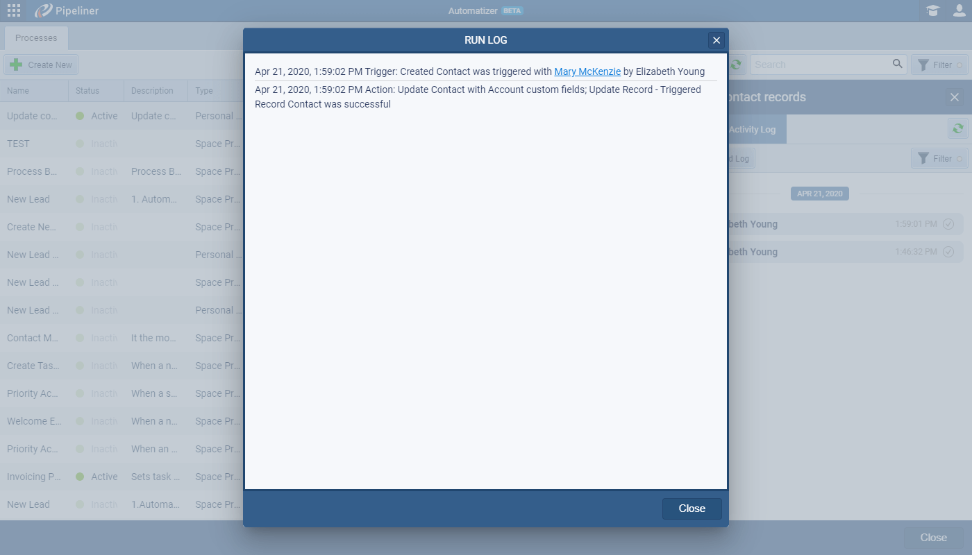 When you are running an Automatizer process — or even testing a process — you want to know what data was created or updated. If there was an error or warning, you want to easily see the data issue on the record and you can now do this using links from the Run log.