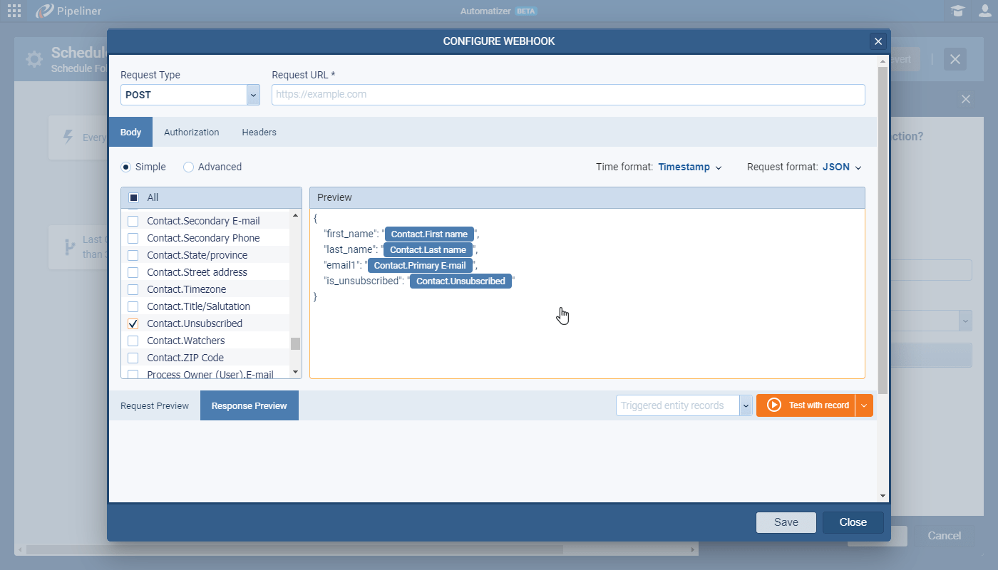 - You can test Webhook immediately without needing to run the Process in Automatizer.
