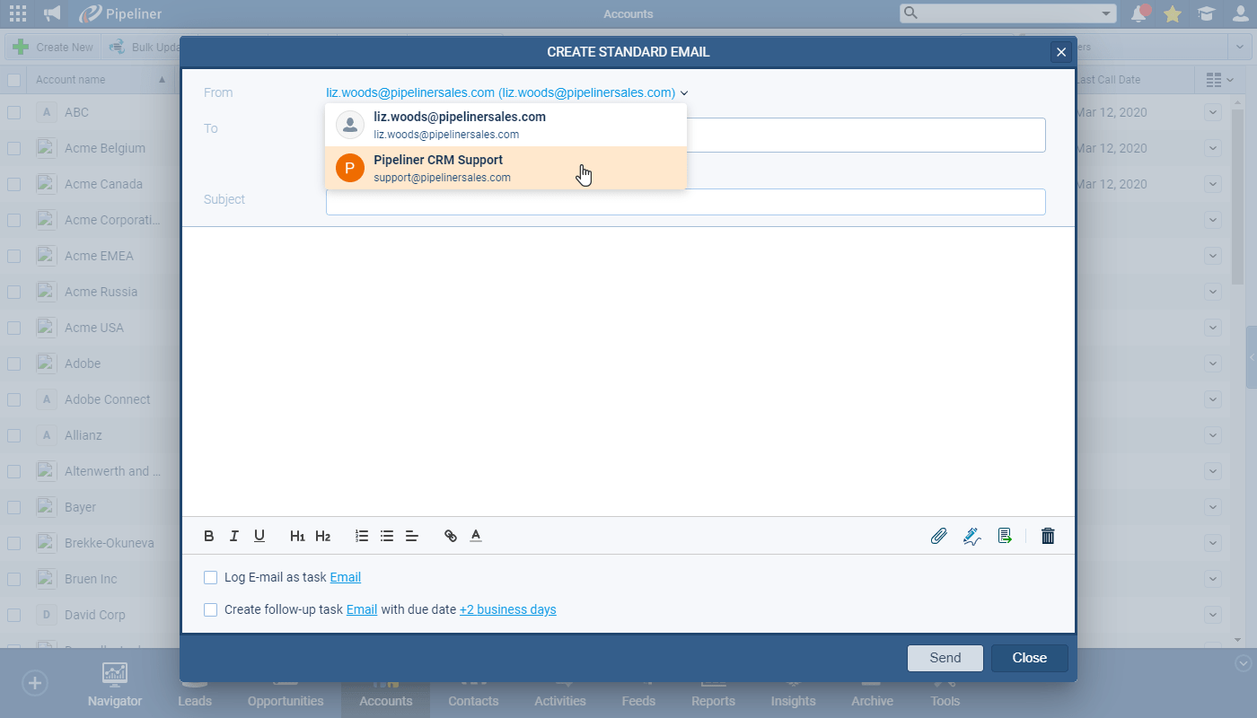 - You can now use the Company Email, which you can select from a dropdown menu when composing an email.