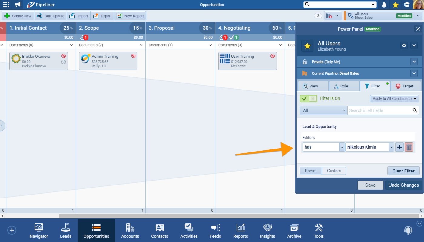 - Filtering data based on Watchers & Editors — When using "Custom Filters" in any main menu or in Reports, you can now filter on "Editors" or "Watchers" as well as "Owner"! Each record can, of course, have many Editors or Watchers so the filtering works the same as when using a custom multi-select checkbox field — i.e. Editors HAS — and will return all records where your specified UserUser User means a person who uses or consumes a product or a service, usually a digital device or an online service.(s) are one of the Editors or Watchers. You can also select multiple Editors or Watchers in the same way as selecting multiple Owners.