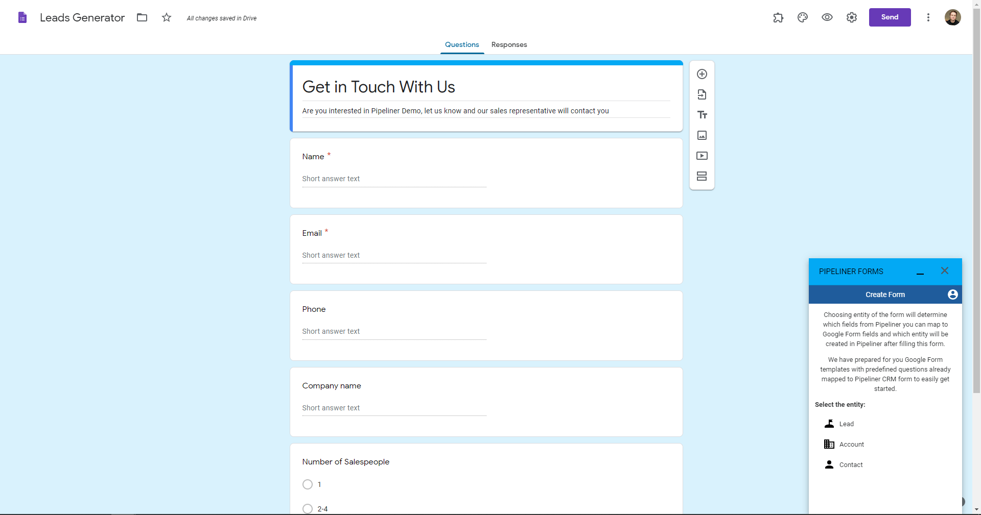 The brand new Coevera Google Forms Add-On allows you to quickly capture sales leads, contacts or accounts directly into Coevera when a form is submitted by email, via a link or from a website.