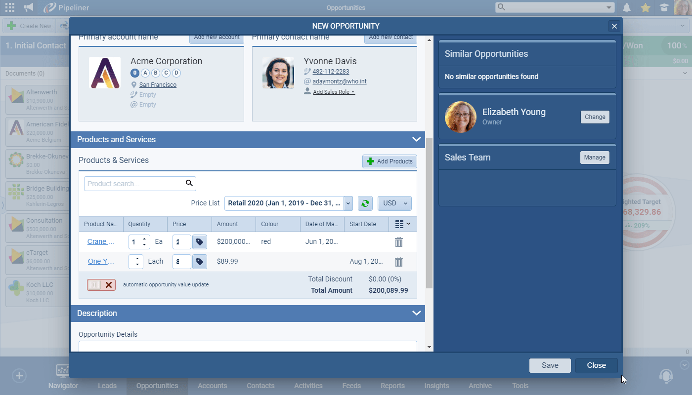 Add Products from the Product Catalog to Opportunities as before but, once added, you can now click on each Product and add additional, line-item specific information to each one. Click on the “Product Name” to open the Product Line Item dialog to add extra information about this product. You can choose to add these custom fields to your Product List View. Use these newly created custom fields in Office 365 Word and Google Docs templates as well as in Pandadoc templates if you use our Pandadoc integration.