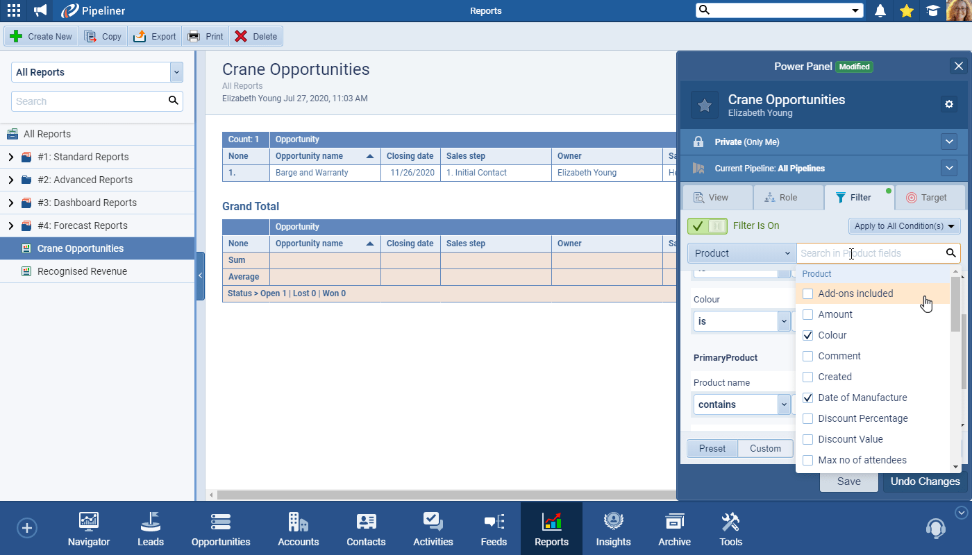 We’ve also added a new option in Filters, so, when you’re reporting on Opportunities, you can filter on Product & Product Line item fields.