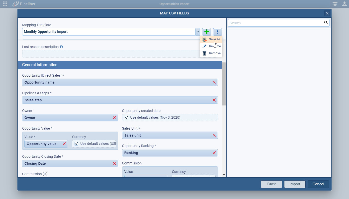 Finally, you can then save the field mappings and select your saved template next time you’re importing.