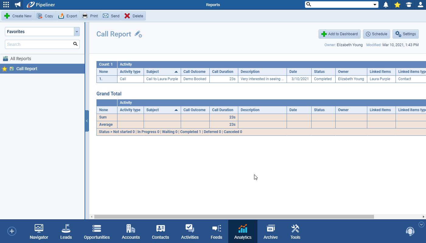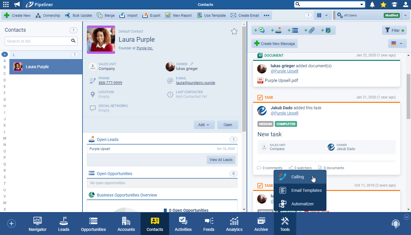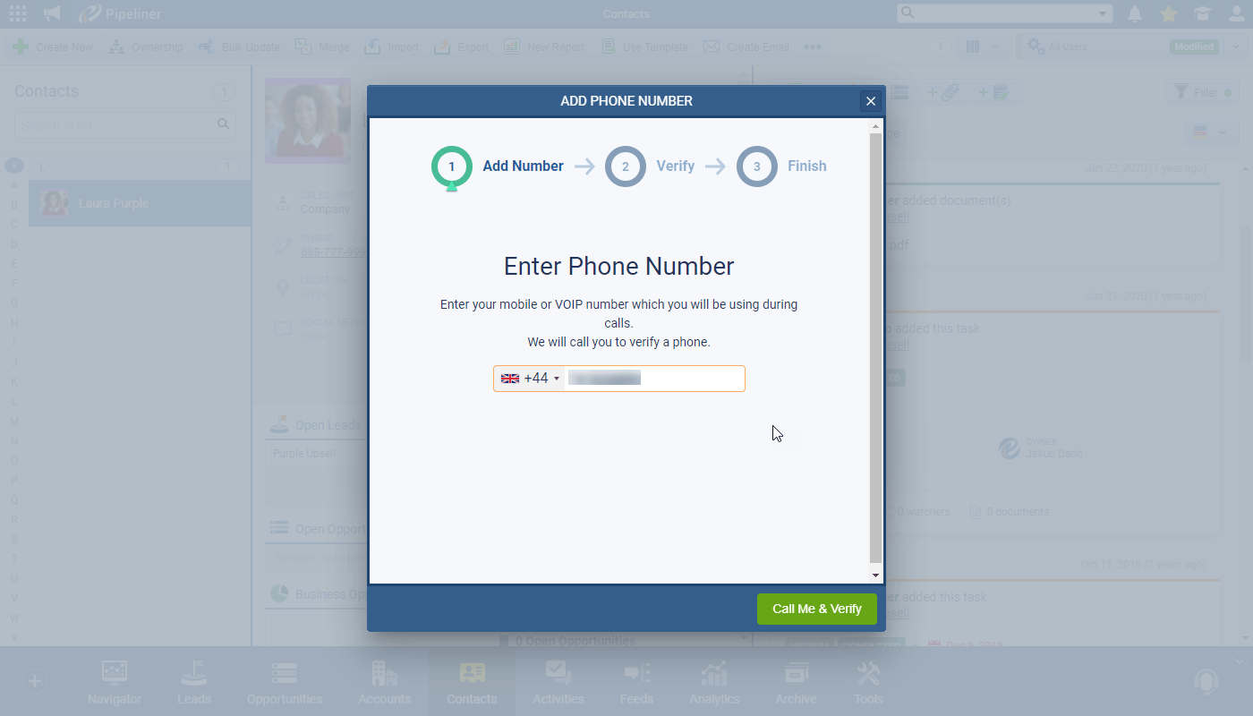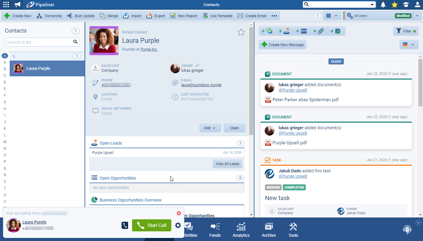 Calls to Contacts or Accounts can then be initiated directly from the Coevera app and seamlessly logged as a completed task.