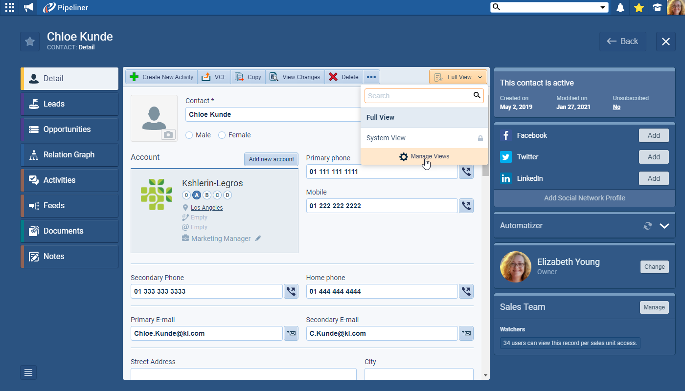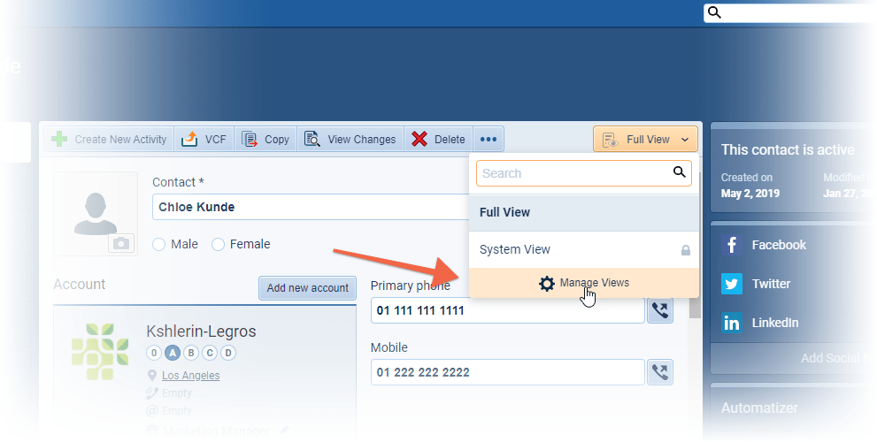 Access “Multiple Form Views” from within an open record by clicking on the “Views” dropdown and selecting “Manage Views”. ⤵