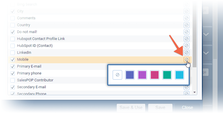 Select a field to be highlighted and then click on the icon on the right and choose which colour to use. ⤵