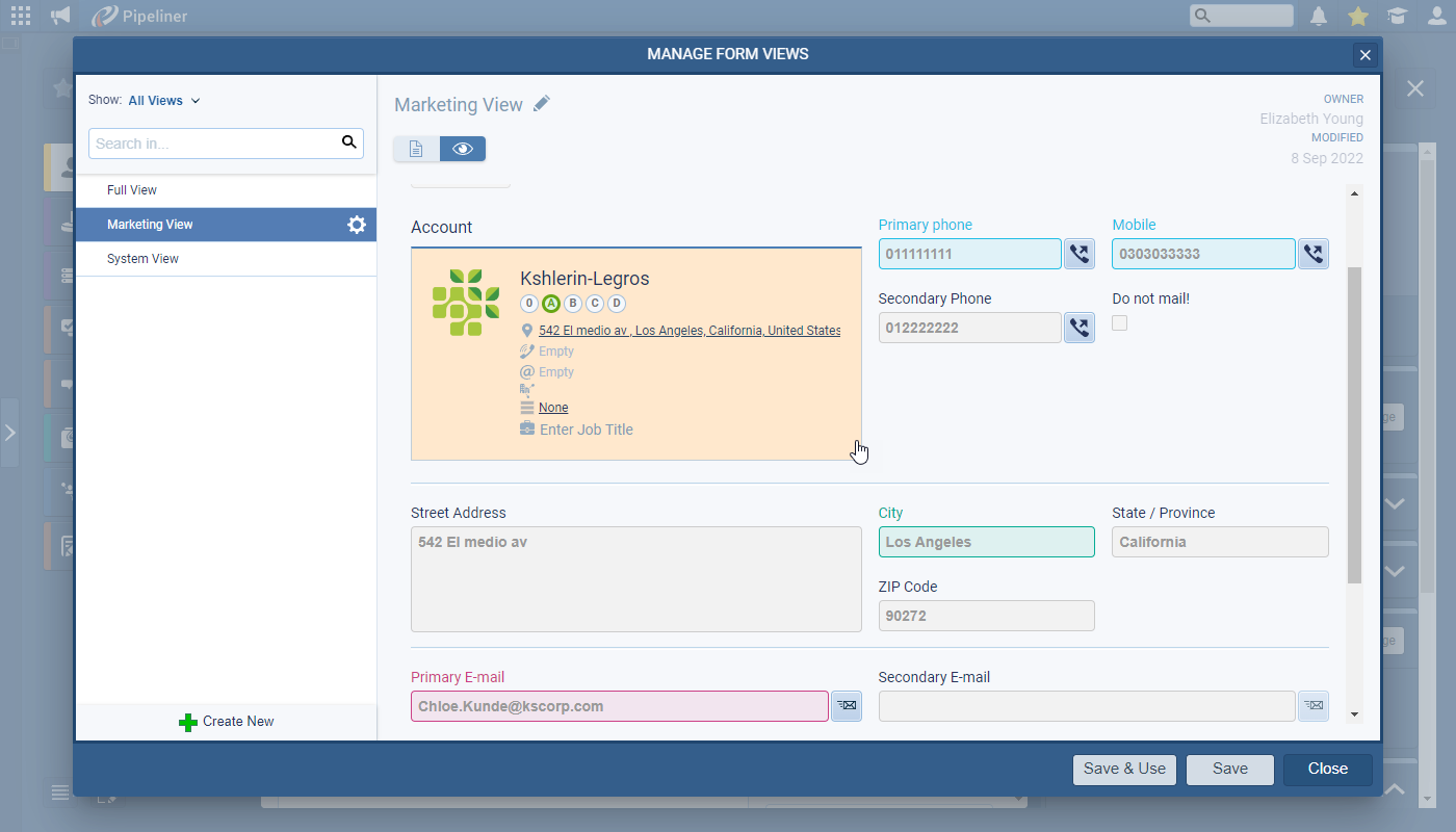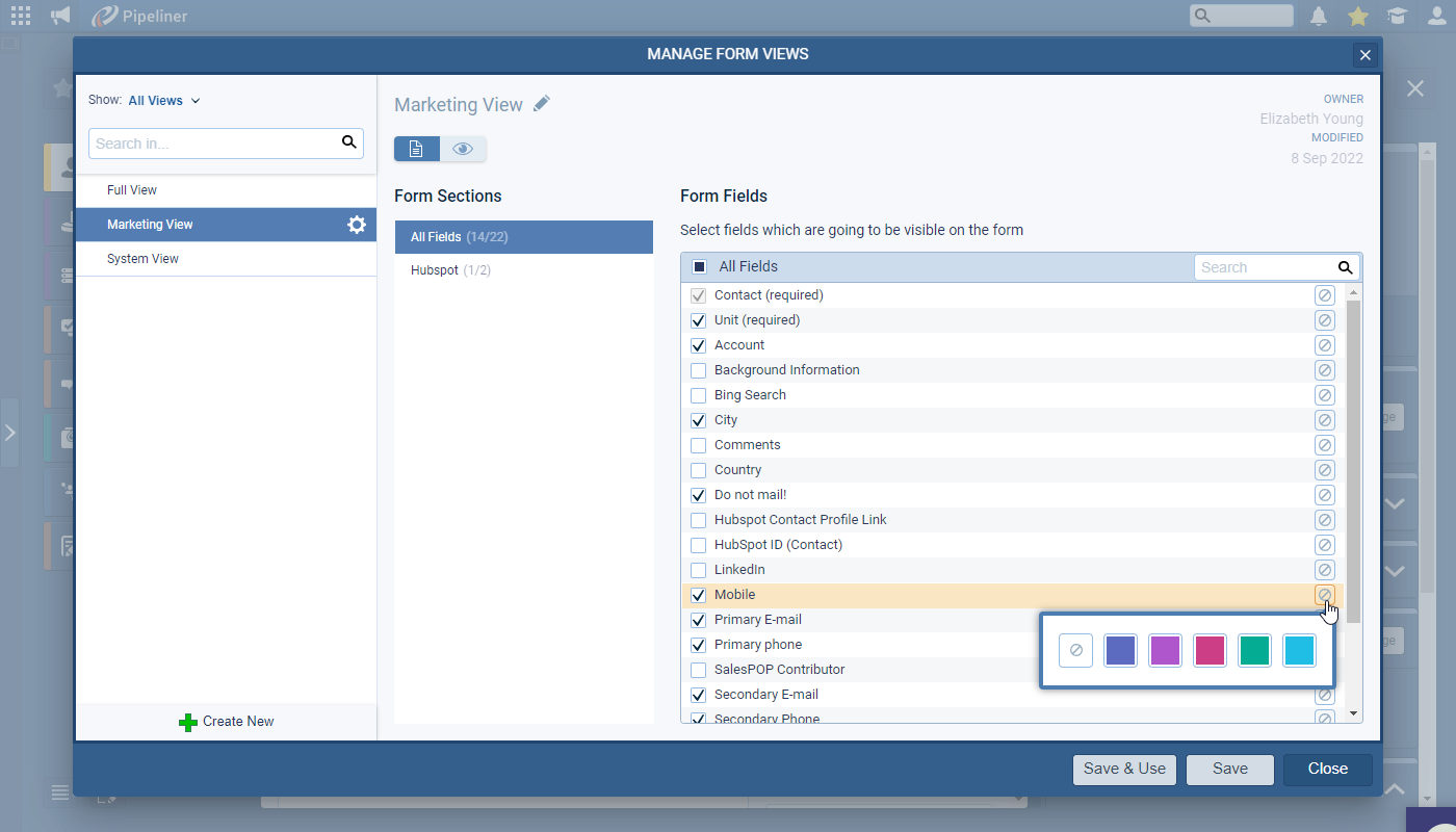 Users can apply coloured field highlighting to selected fields when working with multiple “Form Views” within the web app. “Form Views” can be created and shared by users working within Leads, Opportunities, Accounts and Contacts.