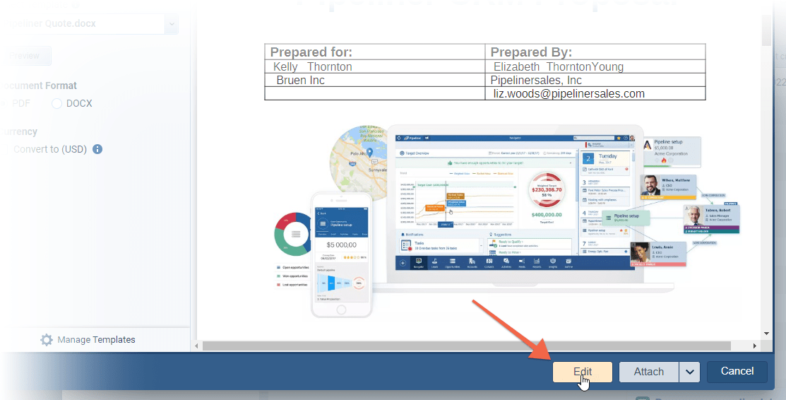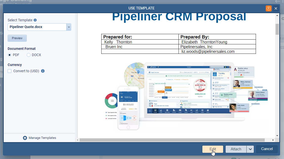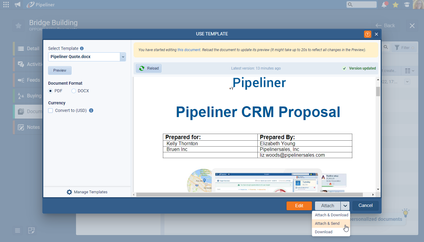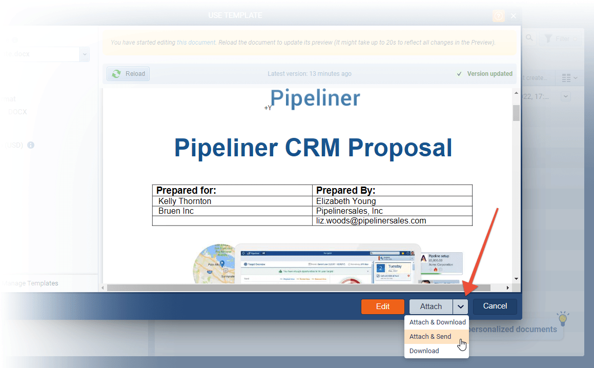 Once users are happy with the template, they can use a new option “Attach & Send” to send it directly via email rather than having to attach it and then send it via email separately. ⤵