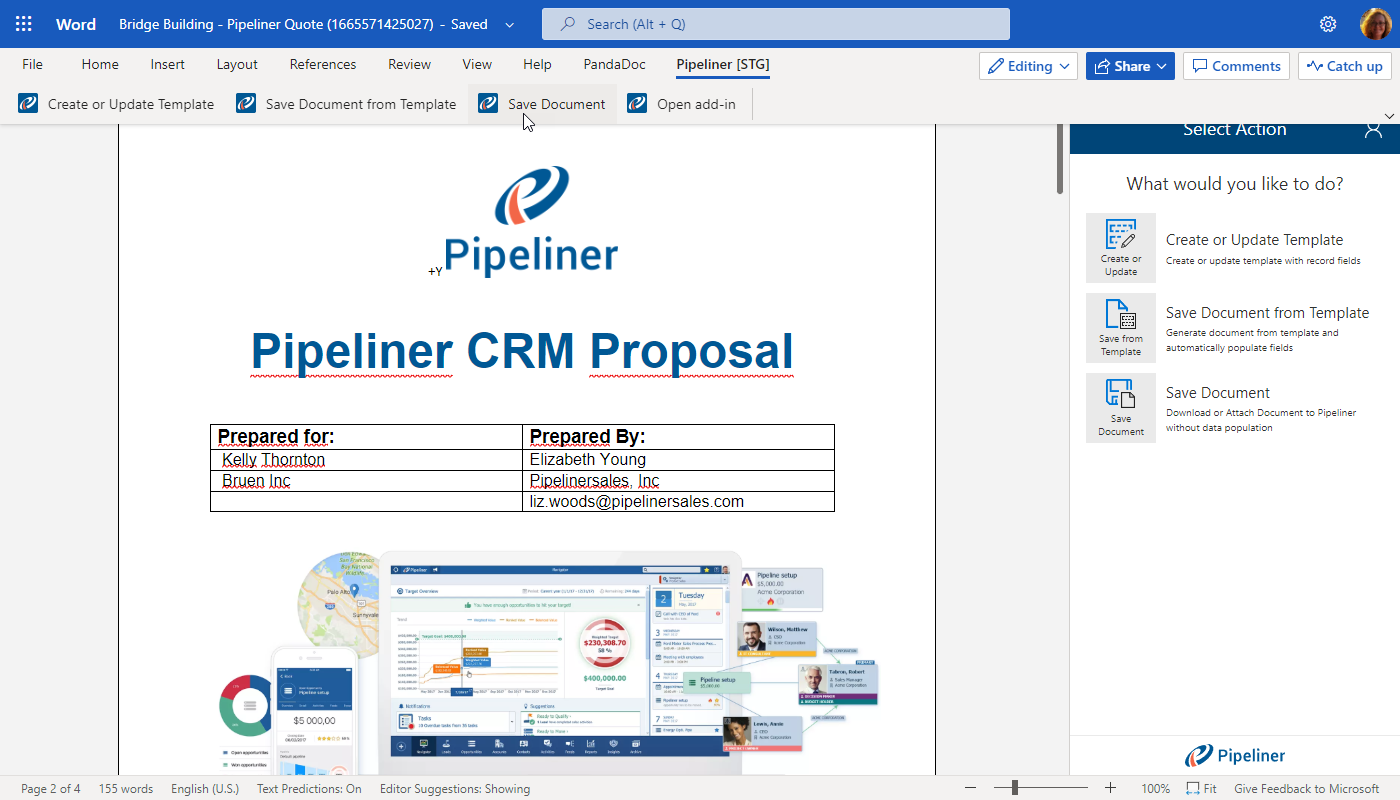 If users are already working on a file in Word or Excel, the “Coevera Templates” add-in now has an option to “Save Document” directly to a selected record inside Coevera rather than having to download it and then attach it. ⤵