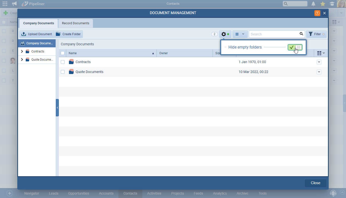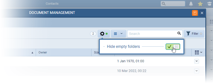 Users can choose to hide/show empty folders in various locations where folders are used: