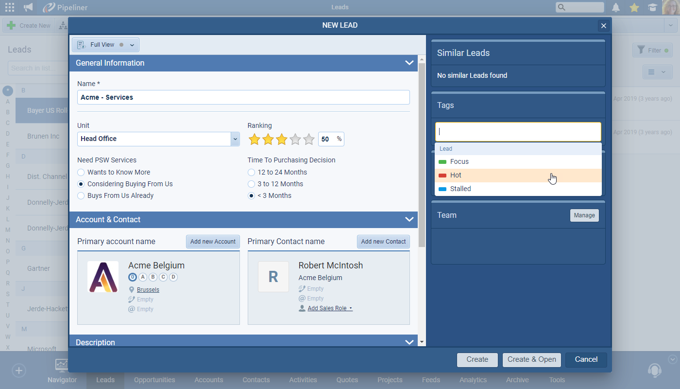 Tags can now be added to a brand new record before clicking on “Create” or “Create & Open” ⤵