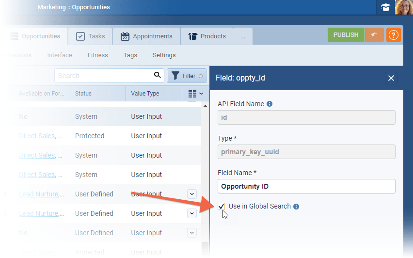 - Opportunity value › Currency › displays the currency symbol used in the Opportunity