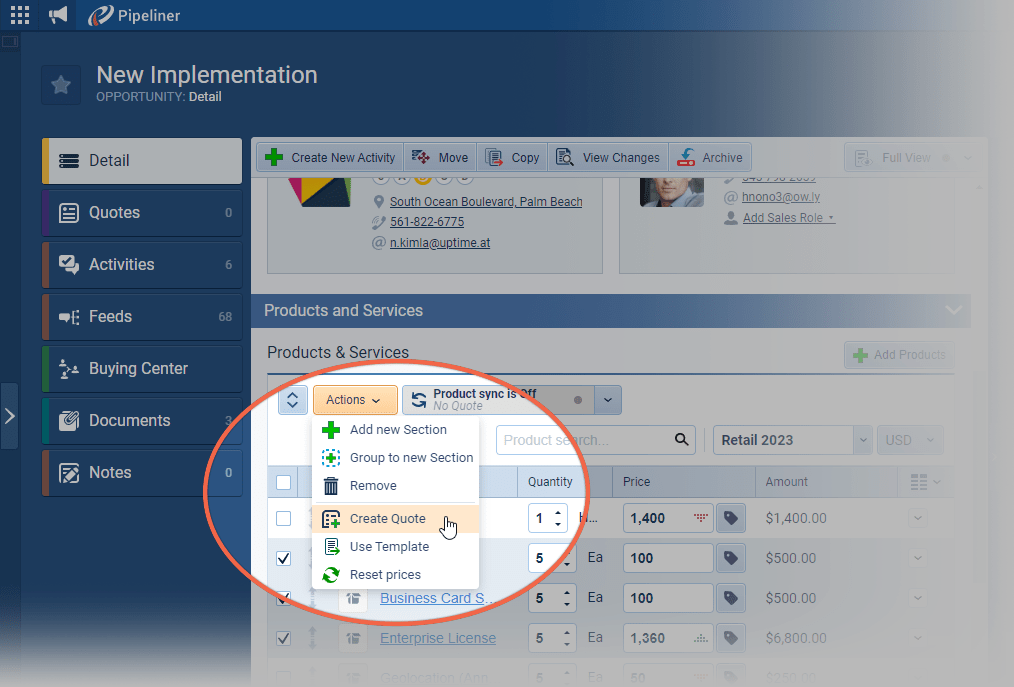 - Output the Quote information — including the “Products & Services” grid — to Office 365 Word or Google Docs Templates and then attach the resulting file to the Documents tab and email it directly to your prospect/customerCustomer Customer is an individual or an organization that purchases a product or signs up for a service offered by a business. (dependent on having an active O365 or Gmail email integration).