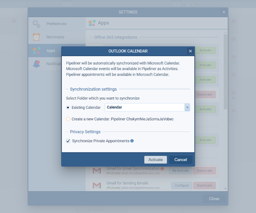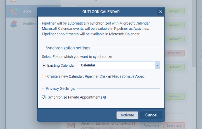 IMPORTANT: The option to “Synchronize Private Appointments” is automatically enabled for all users. Anyone wishing to switch it off will need to navigate to their UserUser User means a person who uses or consumes a product or a service, usually a digital device or an online service. Avatar, then the “Settings” button and the “Apps” tab and choose “Configure” to turn the synchronization of private appointments off. When the option is turned off (or turned on again) only new instances of Private Appointments are not synced/synced. No existing synced appointments will be removed from Coevera (even if they are already marked as “private” in Outlook or Google). If a user wants to delete these private appointments from Coevera, they should first disable private appointment syncing and then delete the previously synced private appointments from Coevera.