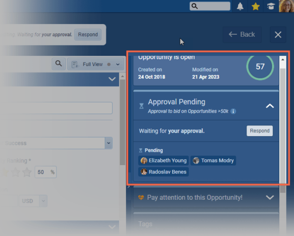 There are so many different occasions when Approval is required from different areas of a business to determine whether it is viable to pursue an Opportunity, to decide if the credit status of an AccountAccount Account refers to a record of primary and background information about an individual or corporate customer, including contact data, preferred services, and transactions with your company. should be upgraded, or even whether to add a Contact to a Christmas Gift list!