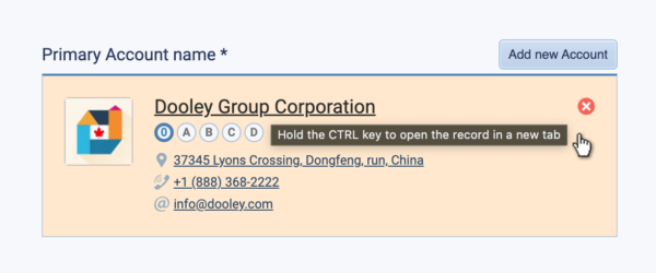 This feature is available throughout the application in cards, linked items, quick record previews and works for all types of records. Users can open a record card in a new tab by pressing Ctrl (or Command on Mac) and clicking on the link, which is a standard behaviour across many web applications. This makes it easier for users to quickly open related records without having to navigate back and forth within the app.