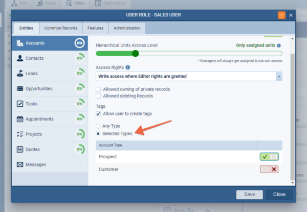 For customers using the multiple Account or Contact types, Admins can now add access to only specific Accounts & Contact Types by User Role. ⤵
