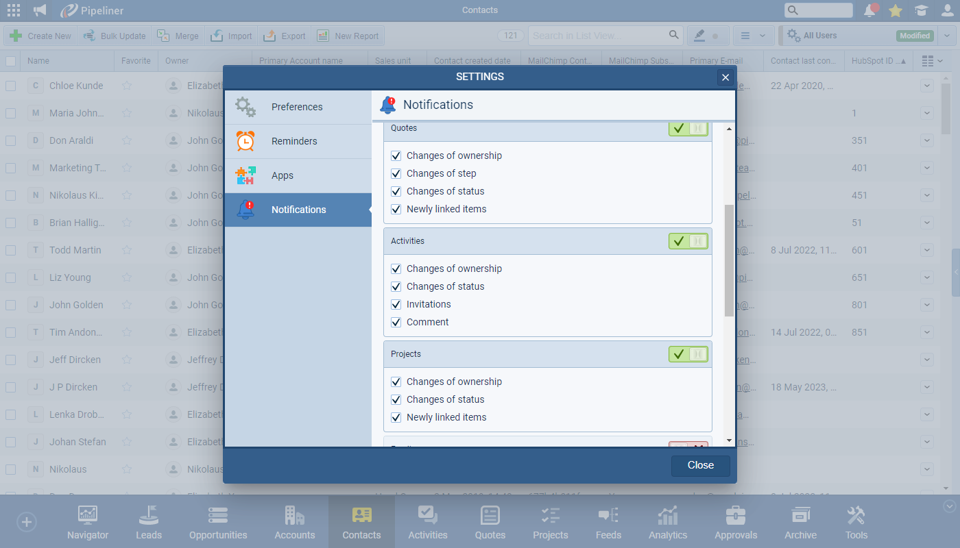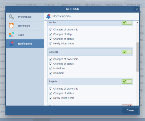 As a direct response to customerCustomer Customer is an individual or an organization that purchases a product or signs up for a service offered by a business. feedback, we’ve added additional options to trigger both In App and Email Notifications when an “Activity” is scheduled for a user — or when one of their Activities is updated by another user. Notifications can now be triggered by a change of “Ownership“, a change in “Status“, when the user is included in an Invitation or when another user adds a “Comment” to an Activity that the user is the “Owner” of or is watching. ⤵
