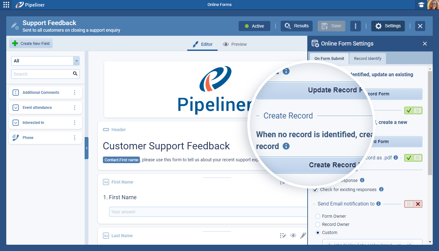 - Update missing/target data in CRM automatically by asking your customers to submit data through Online Forms.