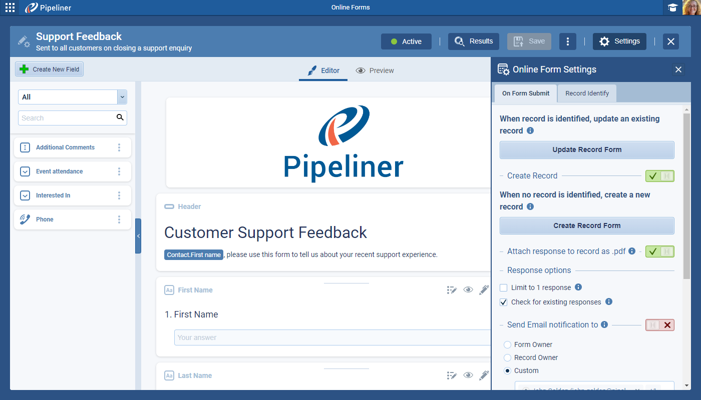 - Get feedback from your customers on your services or products by sending the Online Form as a Survey.
