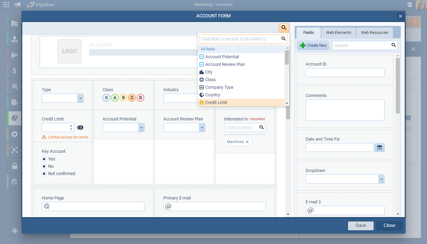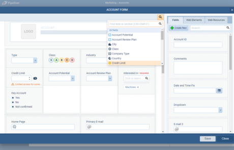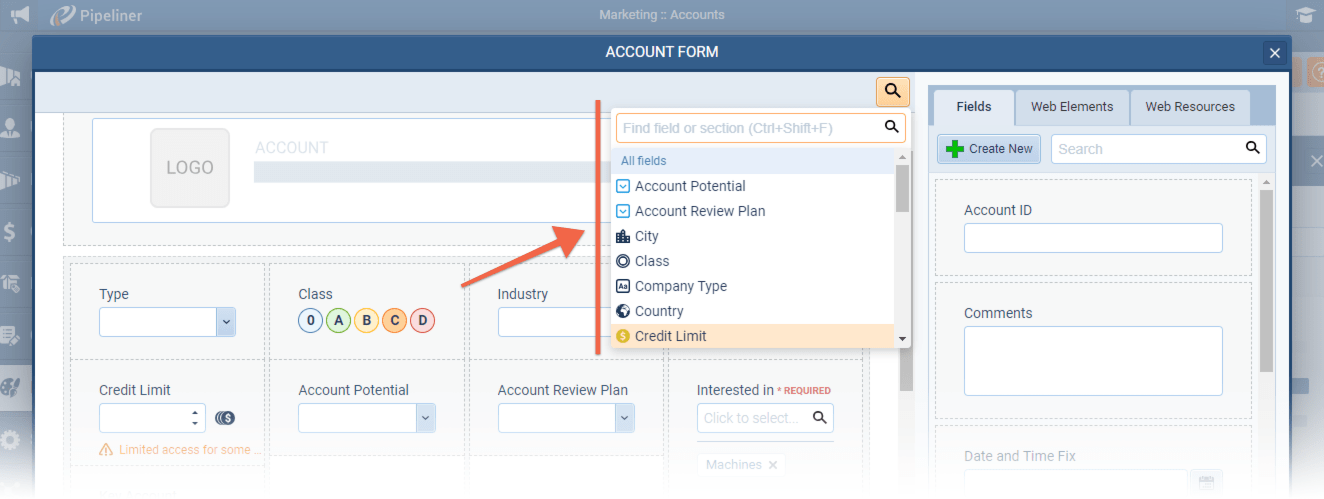 We’ve added the Quick Jump feature to the Admin Module so that Administrators can quickly find a field or section when editing a Form. In the Admin Module, click on Fields & Forms, select the Entity Type and then the Forms tab. Click on the Form and choose the Edit Form button and then use the Search icon in the top right. ⤵