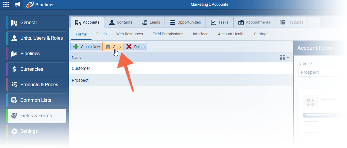 Admins can now be more efficient when managing multiple Account and Contact forms. You now have the option to create a new form from an existing one ⤵