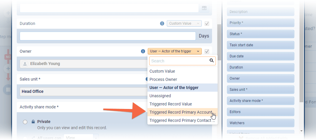 Previously, in Automatizer you were able use the Owner value from the Triggered Record to update a record. We’ve now added the option to use the Owner value from related records such as Triggered record Opportunity — Primary Account owner ⤵