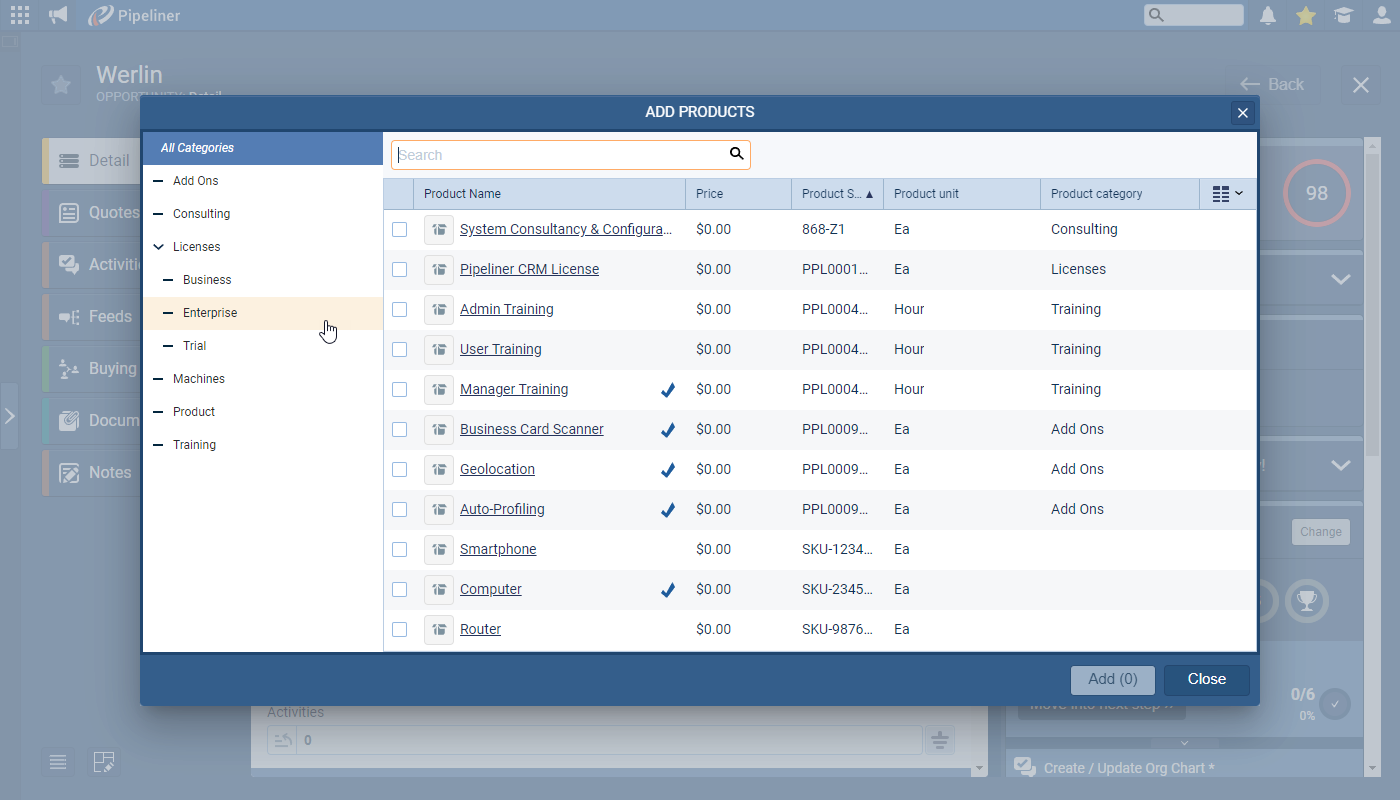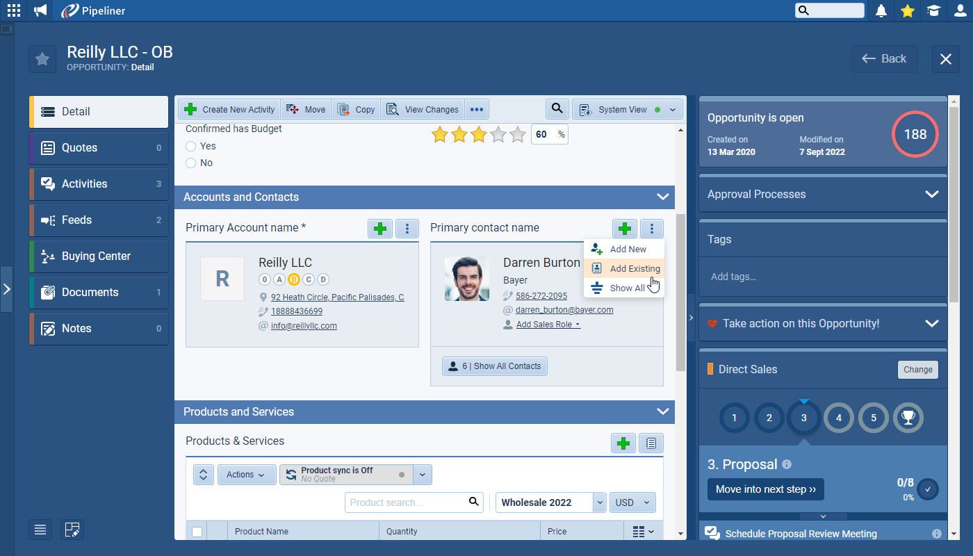 The new “Add Existing List View” option applies to all existing “Related Card Fields” — such as adding a new Account or new Contact to an Opportunity — as well as adding “Products & Services” to an Opportunity and also to all “Custom Lookup fields“.