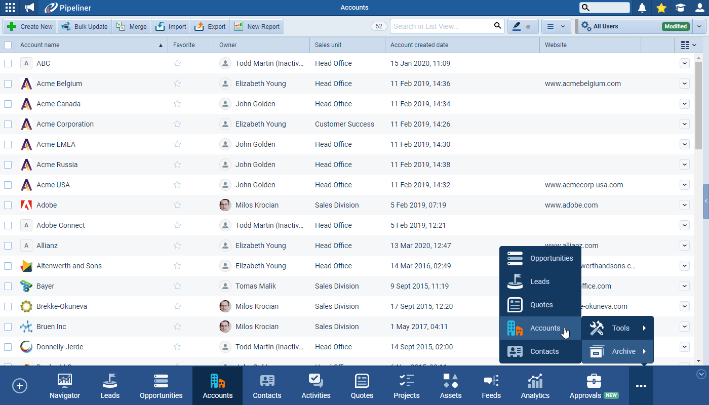 Users can archive Accounts and Contacts manually or Admins can set up Automatizer processes to auto-archive records — for example, if there has been no contact for 6 months.