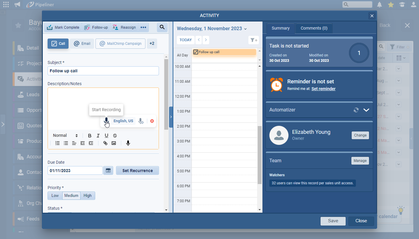 Speech to Text is available in any rich text field in our App, including Automatizer, online forms, email sequences, etc.