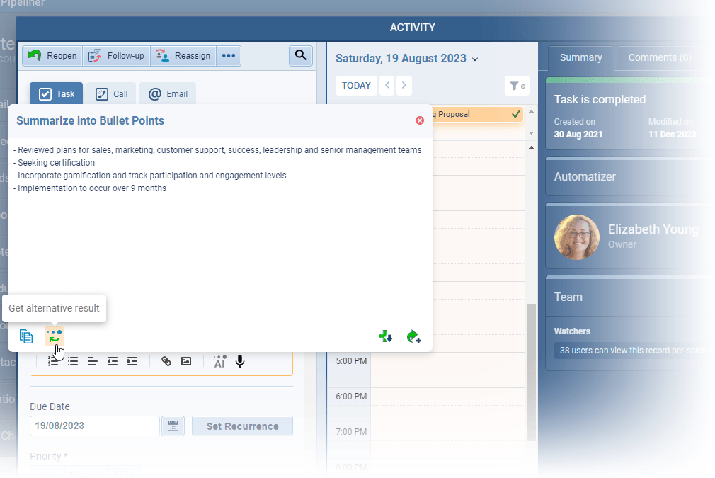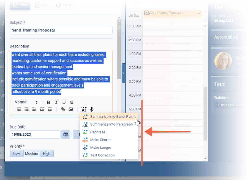 Additionally users can use features that are already available when working with AI in Emails in Coevera: