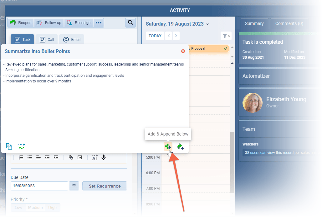 - “Summarize into Bullet Points” › the AI Assistant will process the selected text and the result will be summarized into bullet points
